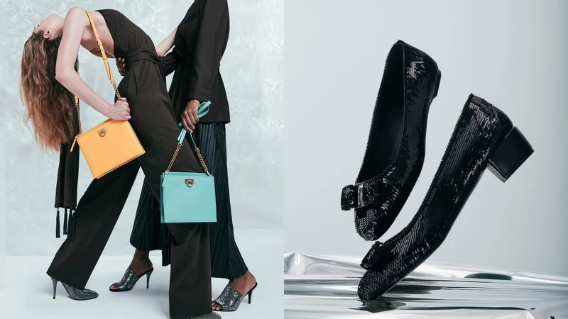 將晚裝元素融入聖誕限定系列,Salvatore Ferragamo今年採用銀色和黑色亮片,替品牌多款經典設計裝點上璀璨光芒,好比由Salvatore Ferragamo女兒Fiamma於1979 年設計的Vara蝴蝶結高跟鞋,在繡上滿滿亮片後除了原先的優雅氛圍,更多了華麗質感,另外像是鑽石跟涼鞋則以煙暈漸層色替鞋履抹上極致的神秘魅惑。然而在包款中,全新的Gancio Square則以簡約方正外型搭載品牌標誌的Gancini釦飾吸引了不少女孩視線,尤其多種色彩選更是獲寵原因之一。