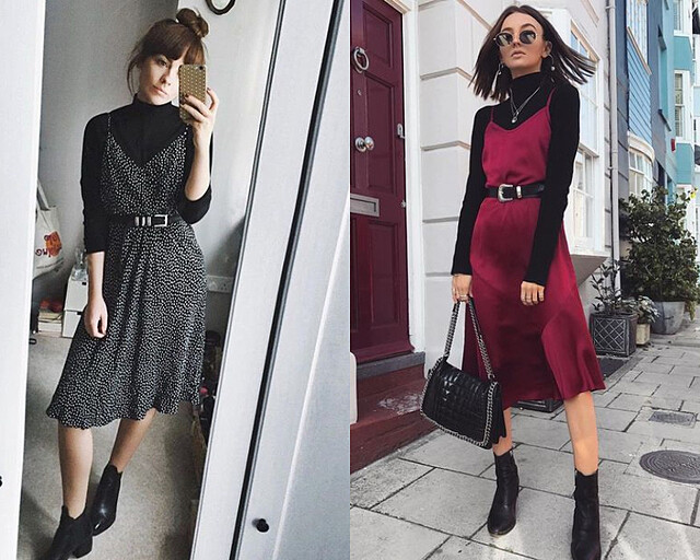 春夏的洋裝先別收!將黑色高領當作內搭,就又賦予洋裝新意穿上整個冬季,舒適又有層次感還能兼顧保暖,一舉數得,也可以如圖中加個腰帶抓出腰線讓比例更好。