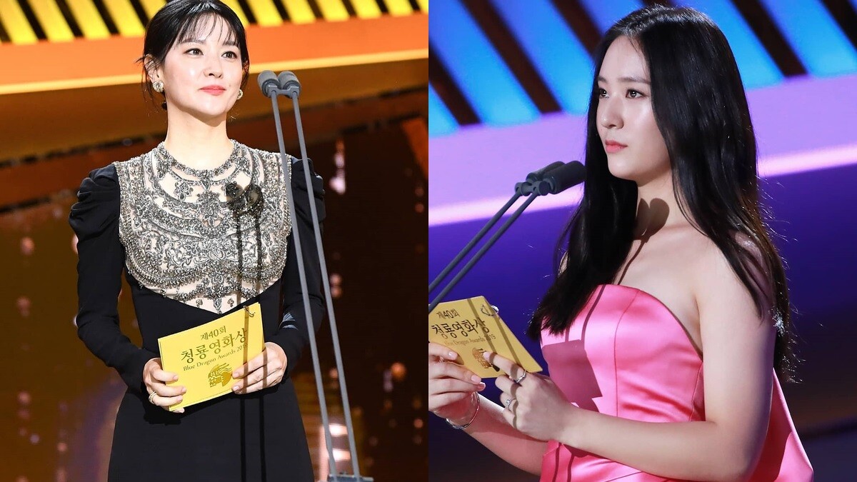 擔任頒獎嘉賓的李英愛、Krystal,分別以各自擅長的風格現身,李英愛一身黑色絲絨水鑽禮服,展現女神般的強大氣場,Krystal則是桃粉色平口禮服,就像是童話世界的公主現身。