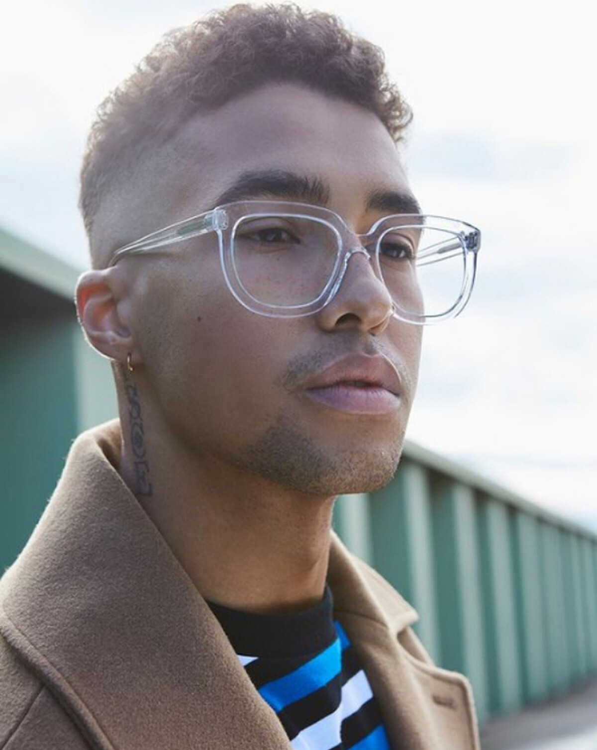 從以上的照片不難發現,透明眼鏡幾乎都是以大框為主,這是因為大框的透明眼鏡並不像傳統眼鏡一樣會遮住臉,不管對於任何臉型的人來說,大框可以說是一款接受度很高的鏡框,記得鏡框不要高於眉毛也不要遮住眉毛,不然會給人留下沒精神的印象。
