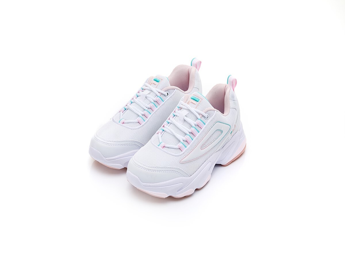 FILA老爹鞋可說是哈韓一族必備款,厚底圓頭的設計,穿起來自帶可愛感,換上春夏蠟筆粉色彩,並配上黃色鞋帶與黃色鞋底,看起來更可愛了!