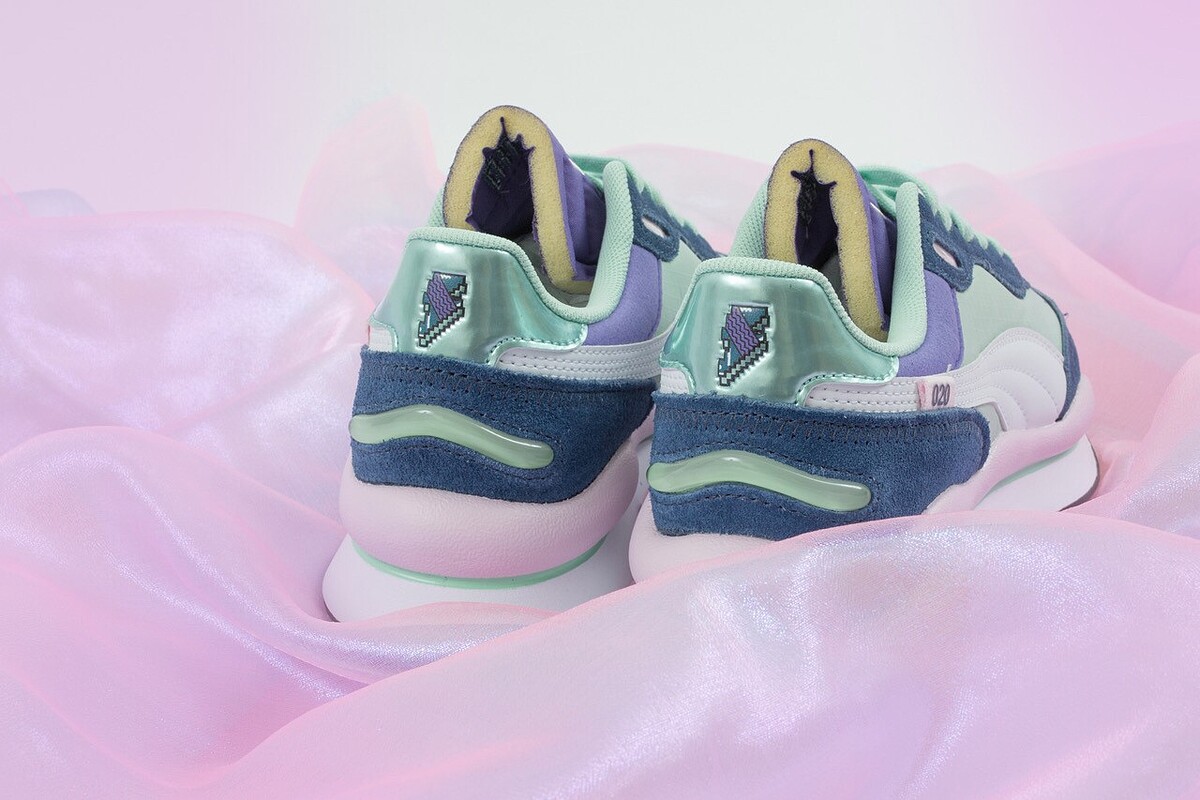 情人節系列的兩款鞋,除了是蠟筆色系外,在鞋後跟都有特殊細節,包括復古的像素愛心、閃電等,就連鞋墊都流露滿滿的愛意呢!