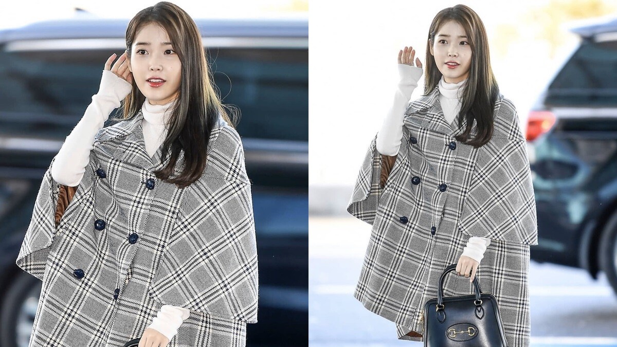為韓劇《愛的迫降》獻聲演唱OST的IU,音源一出果真大受好評,而她更受邀前往米蘭時裝週,參與由Alessandro Michele操刀的Gucci秋冬大秀,身穿格紋斗篷式大衣搭配白色高領毛衣出現在仁川機場,手上提著是Gucci 1955系列Horsebit黑色手提包,不同於平時活潑的IU,更多了一點知性、氣質的風格。