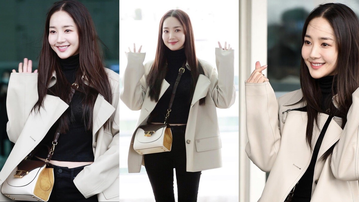 即將開播的韓劇《天氣好的話,我會去找你》,是演女主角的朴敏英,這回要受邀出席米蘭時裝週,身著黑色高領上衣、同色系長褲,外搭白色皮革外套,展現率性幹練的樣貌,身上揹的是TOD’S春夏最新包款Timeless Bag。