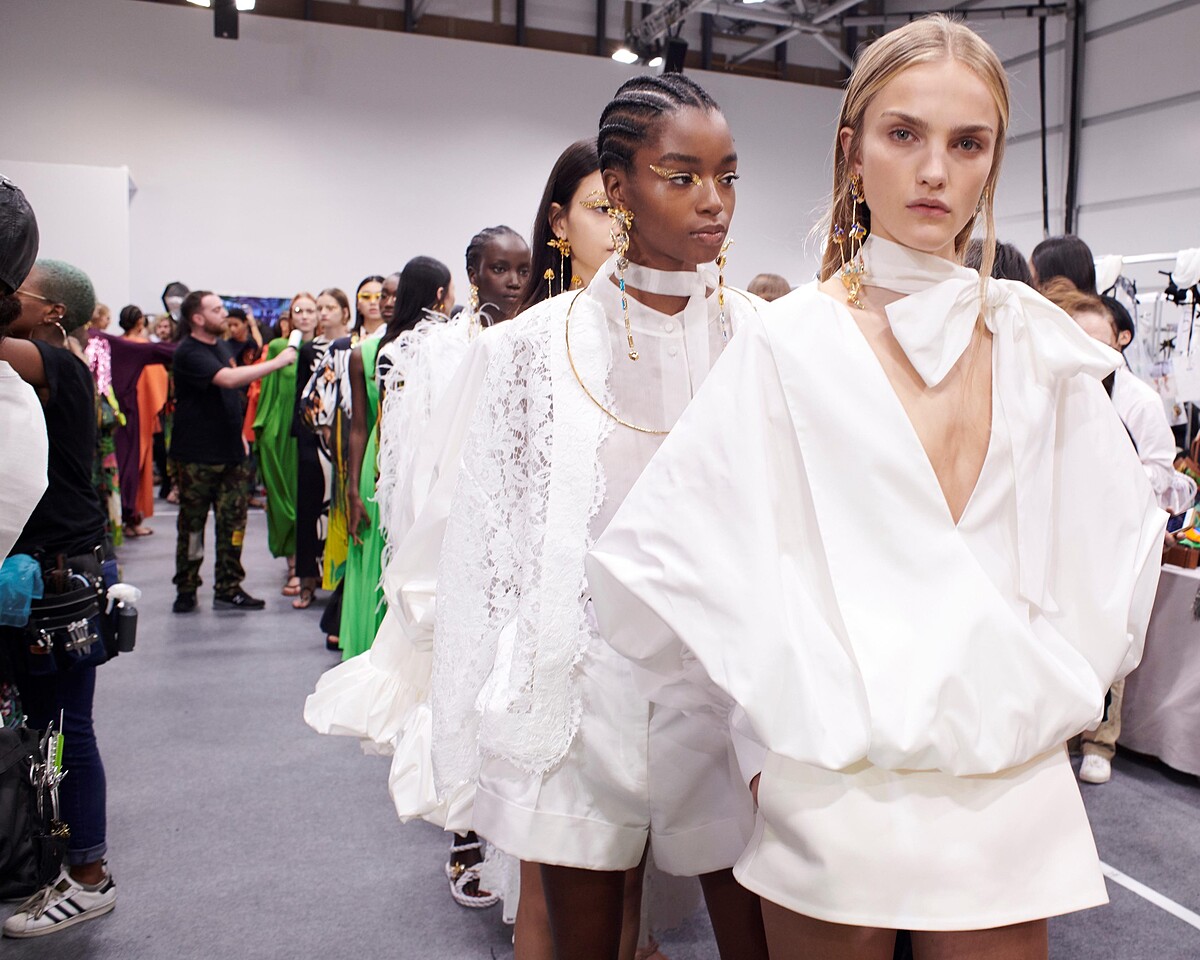 徐若瑄選穿的戰袍出自VALENTINO創意總監Pierpaolo Piccioli手筆,全白色讓穿上的人自帶清爽氣息,超長的蝴蝶結領巾與寬大的泡泡袖與泡泡短褲,有一絲可愛感,不過在深V剪裁又加入了點女人味,在女孩與女人之間抓住完美平衡。