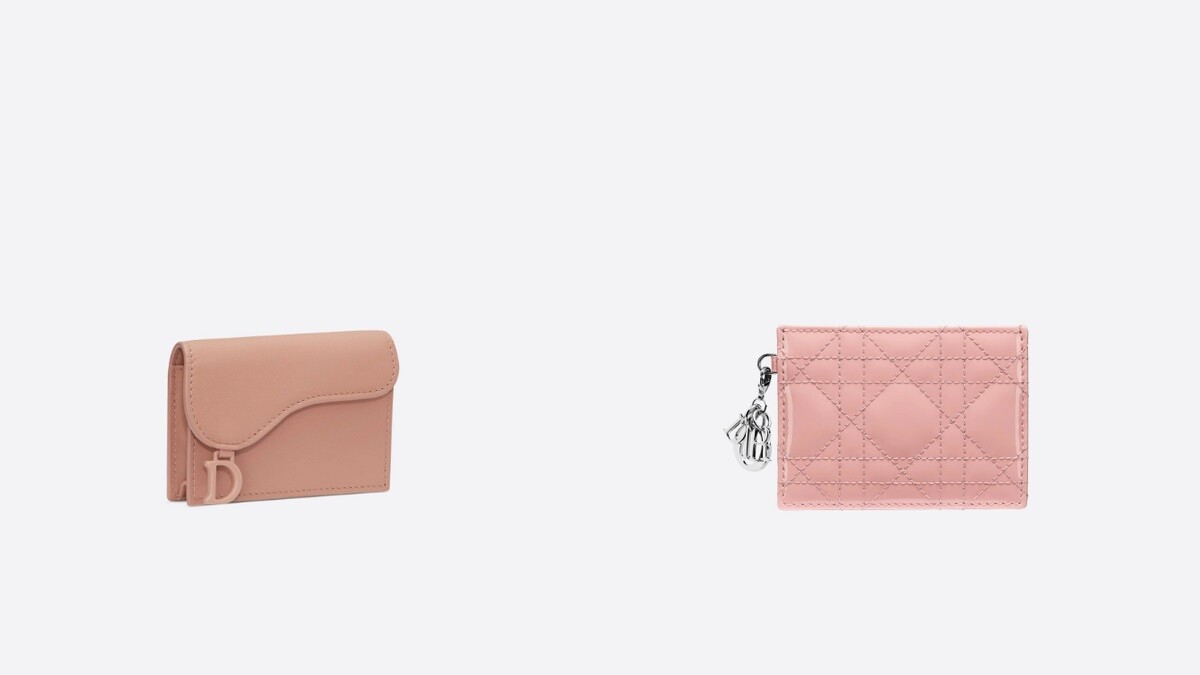 5.DIOR SADDLE棕紅色霧面小牛皮迷你皮夾,NT14,500(左)/ LADY DIOR頂級小牛皮卡夾,NT11,800(右)