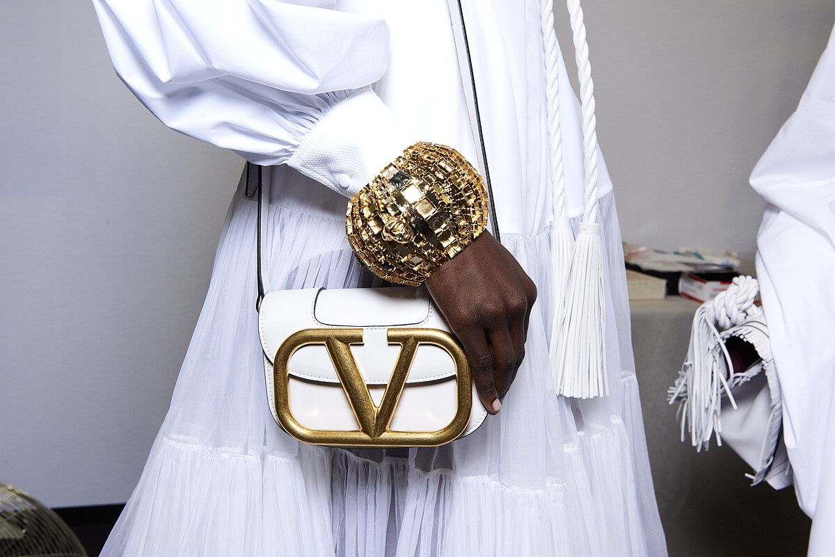 設計:創意總監Pierpaolo Piccioli操刀設計,在簡約的設計中於中央加入V標誌,古銅色的拋光表面,傳遞品牌精神又有識別度,整體設計俐落不失大膽。