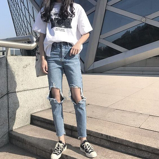 Oversized T-shirt 搭配牛仔長褲似乎已成經典不敗的搭配,整體風格率性、有活力,無論是將衣角紮進褲子裡或是不紮,或者搭配任何顏色、版型的牛仔褲都是截然不同的氛圍。