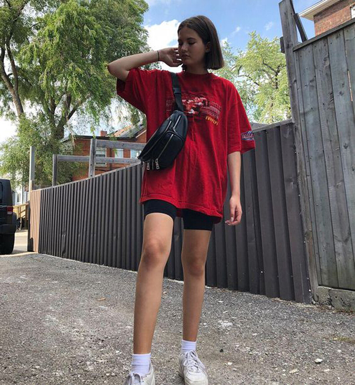 在即將到來的夏天,穿著 Oversized T-shirt 搭配單車褲是非常輕便又好活動的穿搭,想將寬大的 T-shirt 當成一件式穿著出門,又怕下身在視覺上看起來不平衡,此時單車褲就是相當適合出場的單品,也可以嘗試除了黑色以外的其他顏色,甚至是大膽的印花款式!