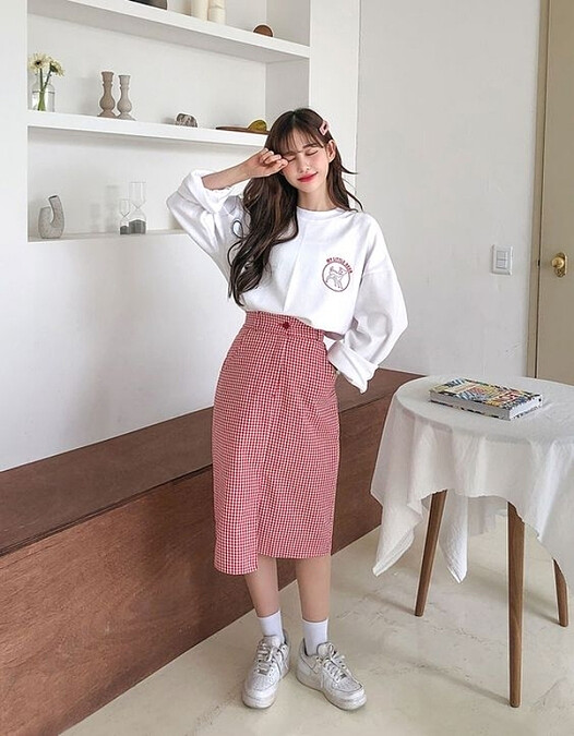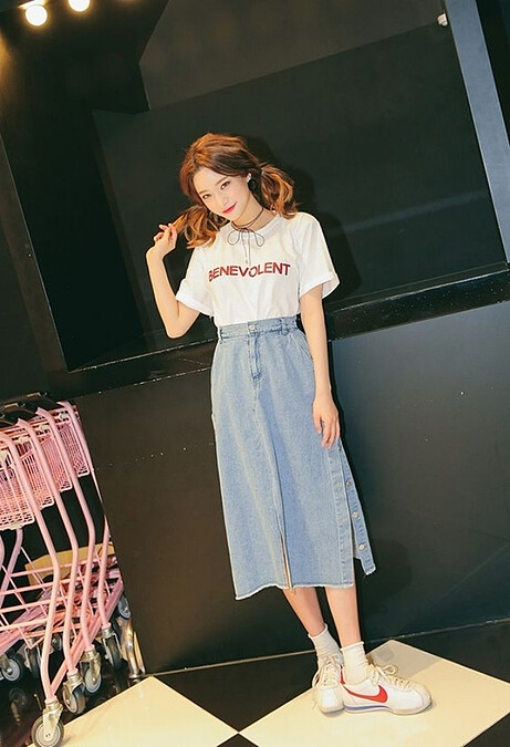 喜歡關注韓妞穿搭的你,相信一定都有察覺韓妞超愛以長裙搭配帆布鞋,例如選搭直筒裙或開衩 A 字裙使小細節製造注目焦點,並利用長襪與球鞋點綴立即打造出輕甜可愛的春夏魅力。