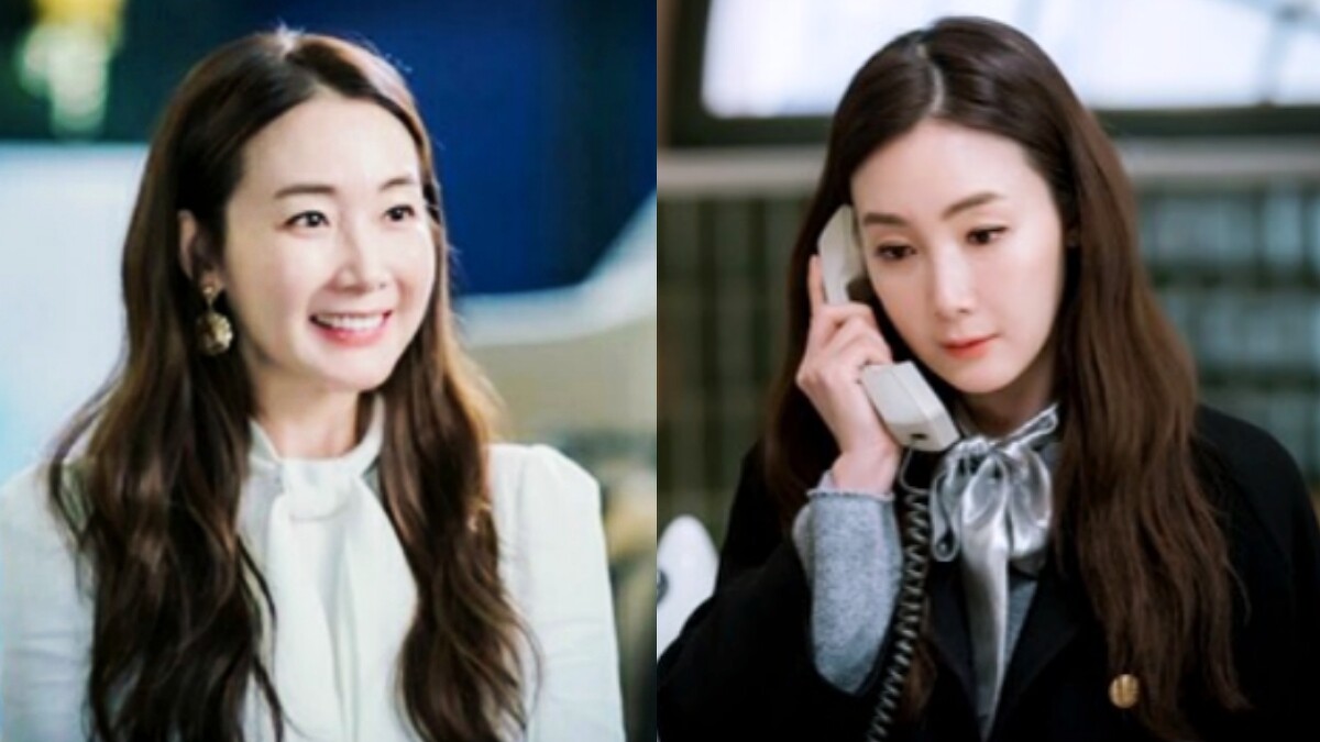 和一般常見的襯衫衣領相比,崔智友反而時常身著一體成形的綁帶襯衫/洋裝,搭配她那披落在肩上的波浪長髮,既浪漫又具端莊的淑女韻味。