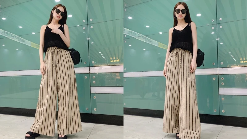 迎接熱情四射的夏季,細肩帶上衣成為女孩們最愛,搭配寬鬆的棉麻寬褲,也能像楊丞琳穿出女人味,嬌小女孩可以配上厚底涼鞋,若是比較高挑的女生也可以選擇以小白鞋。