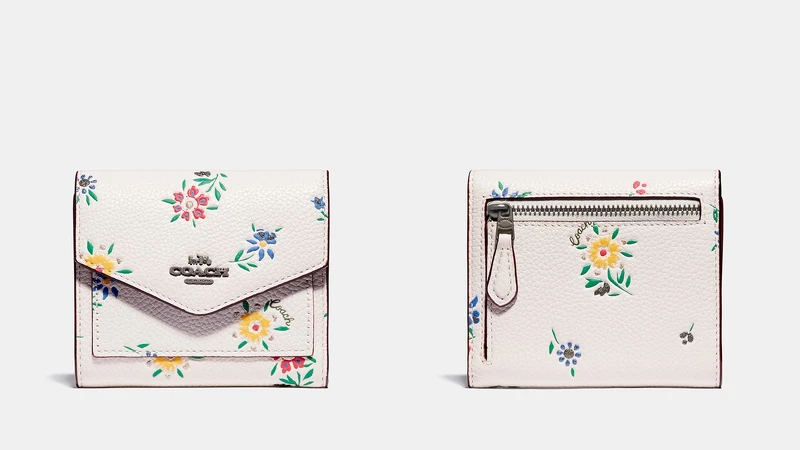 Coach 2020早秋系列以品牌誕生的城市「紐約」為主題,將代表紐約的大蘋果圖案呈現於服飾、配件系列。這款皮夾採用拋光鵝卵石顆粒皮革打造,Coach標誌性的Signature圖案加入玩味十足的光漆蘋果裝飾,擁有三折設計的短夾,可收納卡片、鈔票和收據。另外,春季上架的花卉系列也是不錯選擇,同樣採用拋光鵝卵石顆粒皮革製造,點綴亮眼的狂野花卉印花,適合活潑、俏麗的女孩。蘋果圖案皮夾,NT5,900 / 狂野花卉印花皮夾,NT5,900