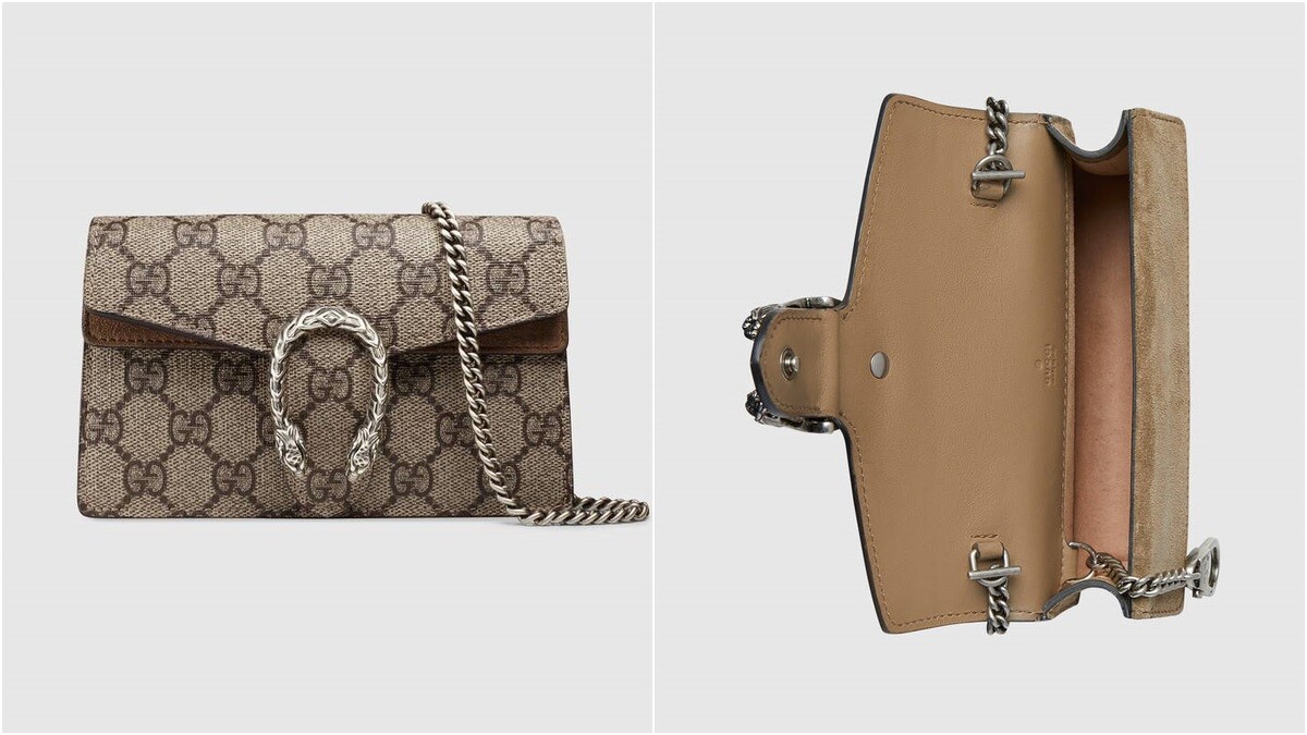 以希臘神話狄俄尼索斯為靈感的Dionysus系列迷你手袋,採用GG Supreme頂級帆布製作,並搭配虎頭鑰匙扣環,包包可以容納手機、錢包、鑰匙等物品,價格也是相當親民。(約NT25,000)
