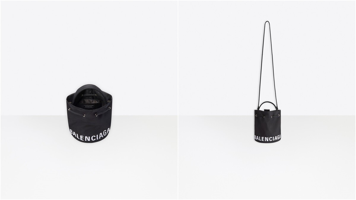 Balenciaga還有另一款人氣包款Wheel Xs Drawstring Bucket水桶包,同樣深受女孩們的喜愛,採用可回收尼龍,手袋外型挺立卻相當輕盈,包內有一個隔層,搭配可拆卸式肩帶,推出黑、粉兩色。(約NT26,000)