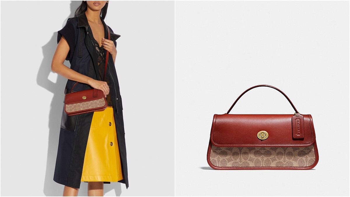 源自Coach經典手袋和紐約文化特色的Signature帆布轉扣手拿包,採用細緻皮革拼接Signature帆布製成,標誌性的Coach Monogram圖案,加上橫向修長的包身設計,絕對是復古手袋的翹楚。包包本身擁有多功能內置,能以轉扣閉合,提供斜背、手提等不同使用方式,絕對是女孩們入門包款的首選。(NT19,800)