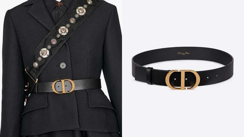 以Dior的誕生之地巴黎蒙田大道30號為靈感的Dior 30 Montaigne腰帶,採用黑色光滑小牛皮,搭配充滿復古風格的經典金屬CD釦環,透過細膩的設計強調腰部線條,更能幫助女生修飾身材線條。(NT25,000)