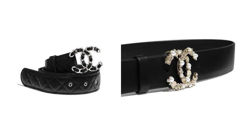 說到經典Logo標誌,那怎麼少的了Chanel小牛皮腰帶,標誌性的外雙C Logo,加上品牌典藏菱格紋與皮革穿繩元素,看似浮華的設計,卻能優雅點綴女孩們的穿搭。此外,Chanel另一款腰帶,在雙C Logo上加入了水鑽,突顯品牌與生俱來的貴族感。(左NT28,900,右NT35,500)