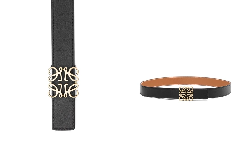 設計金童Jonathan Anderson入主Loewe擔任創意總監,便找來法國平面設計師雙人組 M/M Paris為品牌打造全新視覺形象,便將原先單一的L Logo採用重覆翻轉的排列重新演繹,Loewe Anagram皮帶採用細緻小牛皮製成,搭配黃銅Anagram Logo,展現Loewe獨特的品牌精神。(約NT12,000)