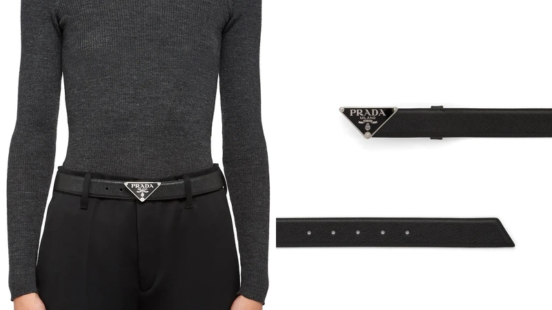 一眼就能辨別出來的倒三角鐵牌Logo,是Prada鐵粉都熟悉的品牌標誌,品牌也以倒三角鐵牌Logo推出Saffiano皮帶,採用細緻Saffiano皮革打造而成,加入具辨識度的經典Logo,更提供寬、細版不同尺寸的選擇。(約NT13,000)