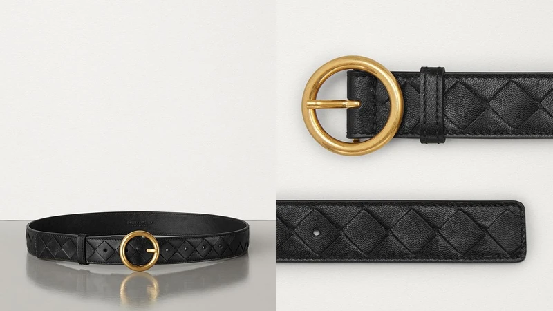 以編織著名的米蘭精品牌Bottega Veneta,也推出一款編織圓釦腰帶,雖然沒有一眼就能辨識的經典Logo圖案,卻能滿足不愛奢華風格的你。BV腰帶採用納帕編織皮革製成,搭載金色圓形釦飾展現品牌一貫的低調美學,除了經典黑色系,還有純白色、大地色及熱情紅等色選。(約NT18,000)