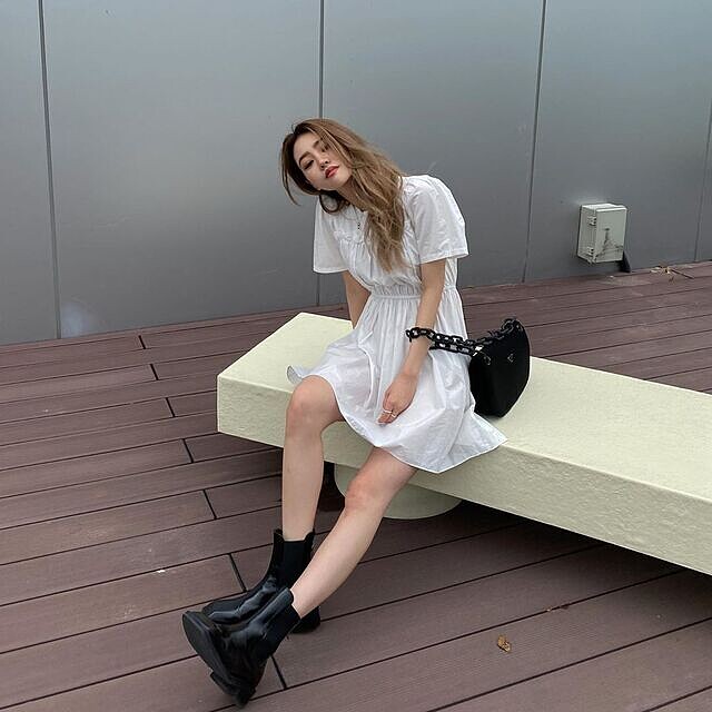 白色透膚洋裝總予人甜美可愛的形象,但搭配不同的配件也能轉換成其他種風格,像圖中便利用黑色皮靴與鎖鏈背帶的包包詮釋酷勁感!而且夏日最適合這種 One Piece 的單品,不用煩惱上、下身如何相互搭配,只要套上一件就搞定,另外建議選擇洋裝本身具有腰線的款式能讓身材比例更好哦!(photo source)