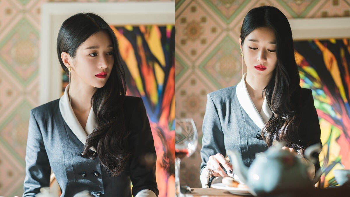 最先登場的徐睿知,穿著正式的西裝式洋裝獨自在餐廳吃飯,優雅的連身洋裝加上她精緻的妝容與髮型,作為首個登場的造型,足以讓戲迷們眼睛一亮。