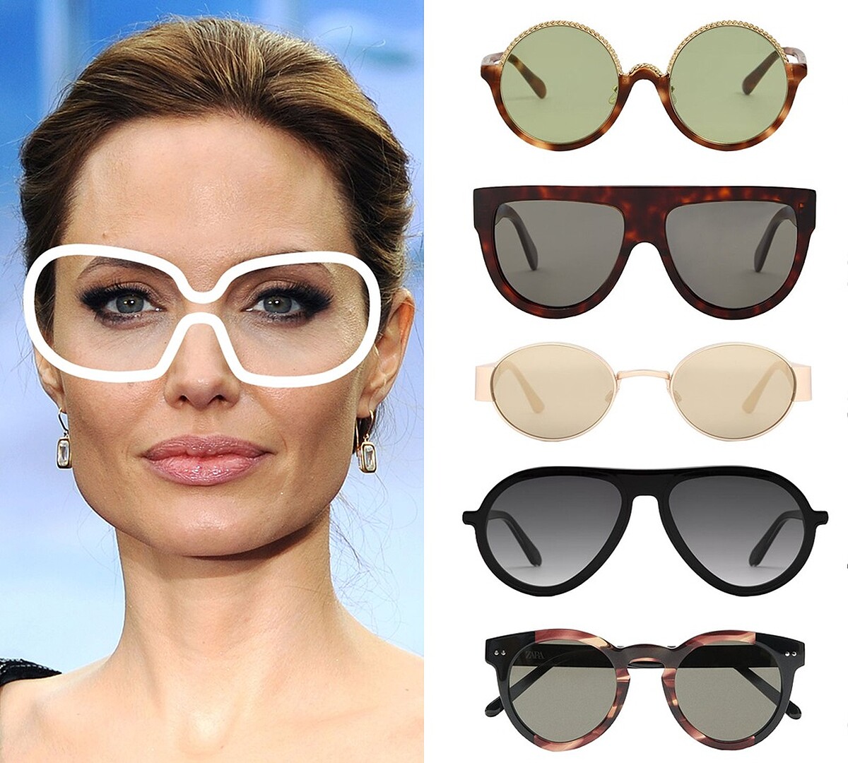 如果你的臉型跟Angelina Jolie一樣屬於多稜角的方形臉的話,則是可以挑選圓形鏡框,如此便可以修飾臉部較為明顯的稜角。