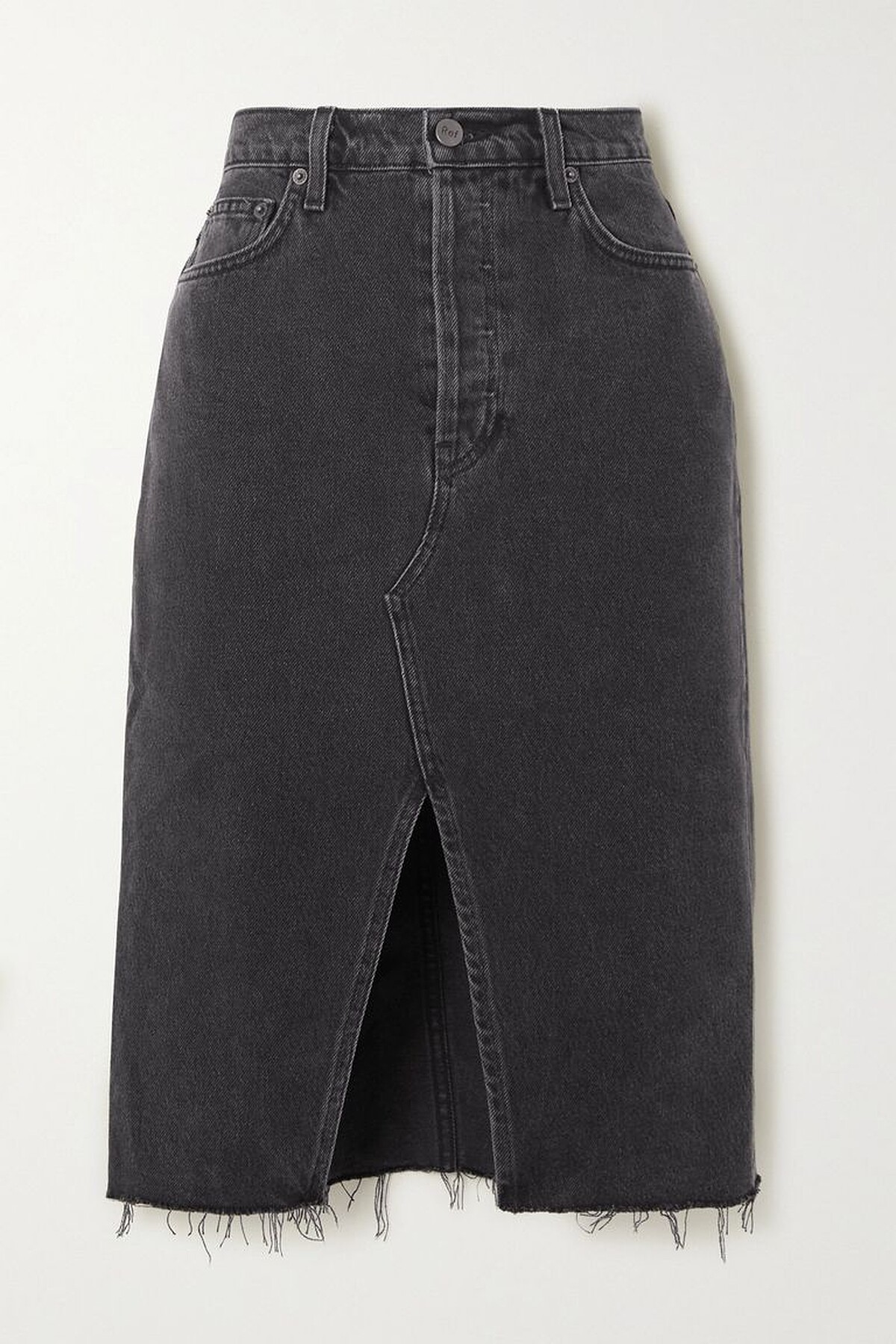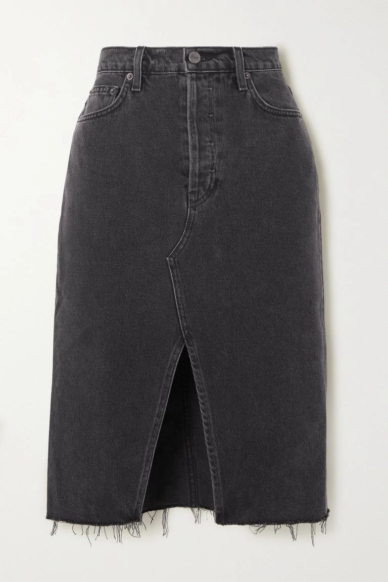 及膝磨邊牛仔裙