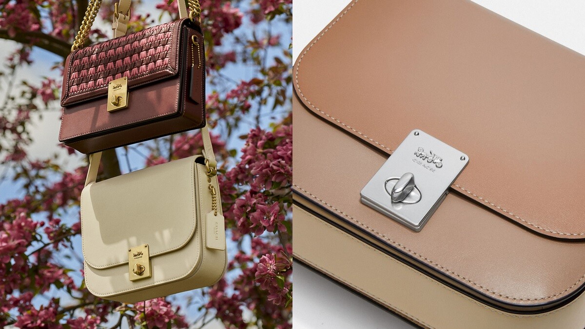 2020早秋Coach將首位設計師Bonnie Cashin於1972年所創作的經典9170 Courier Pouch包款衍伸而來的Saddle手袋,以及2020年創意總監Stuart Vevers所設計Hutton手袋,同時汲取復古經典Saddle與優雅雋永Hutton兩大包款特色,推出全新Hutton Saddle手袋。全新Hutton Saddle手袋輪廓則以Saddle圓弧外型為設計,其搭扣則是以Hutton款式的標誌性轉扣打造,採用光滑皮革並經由義大利鞣製工藝處理,為皮革呈現出超細緻顆粒紋理與光滑質感,內裡則是運用麂皮面料製成,包款共推出黑色、白色、米色及藍色四種色選,並搭配能自由調整長度的揹帶。(NT16,800)