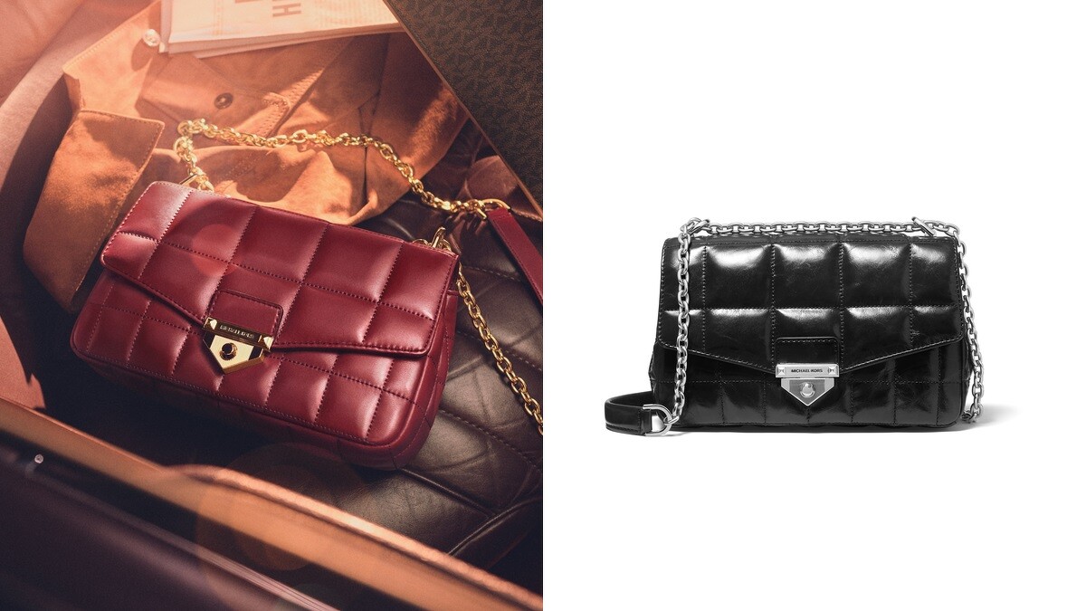 2020秋冬Michael Kors以紐約最具代表的Soho蘇活區為靈感,打造全新Soho系列手袋,選用上等小牛皮、小羊皮革製作,運用精湛的絎縫皮革工藝,將包款外觀賦予如紐約市的城市線條,在光線的反射下,手袋皮革隱約浮現自然紋理,結合應景秋冬的酒紅色、焦糖咖啡、墨綠色、深邃藍…等,搭載金色金屬鍊帶,可以自由調整肩背、斜背方式,為秋冬穿搭增添亮點。(Soho鍊帶包,NT17,500)
