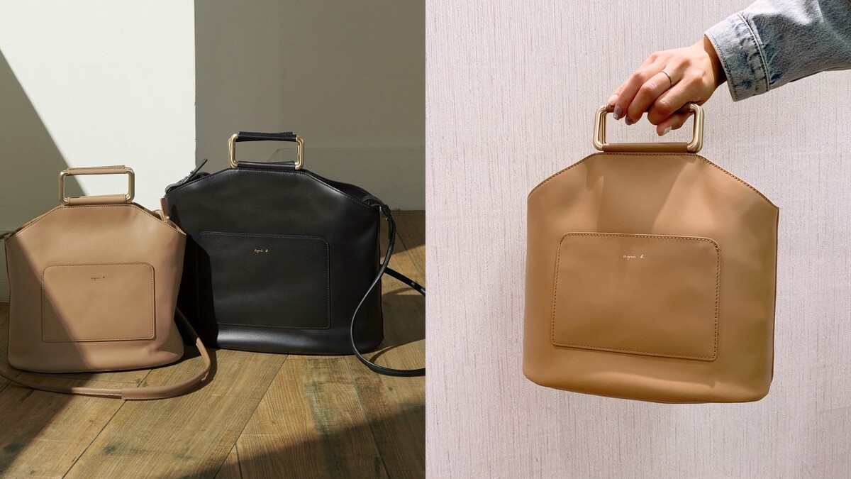 搭上近年的復古風潮,Agnes.b揉合俐落幾何線條,打造秋冬全新手袋Jeanette皮革包,除了極具特色的幾何輪廓線條,品牌精選細緻皮革面料,搭上方型金屬提把設計,並於包身外點綴小口袋,營造摩登、都會的質感。Jeanette皮革包推出應景秋冬的奶茶色、莓紅色及經典黑,更提供大型、中型2種尺寸的選擇,還有能自行調整長度的斜背帶,不論外出旅行、日常購物或是上班攜帶皆合適。(Jeanette皮革包,NT12,580大/ NT10,580中)