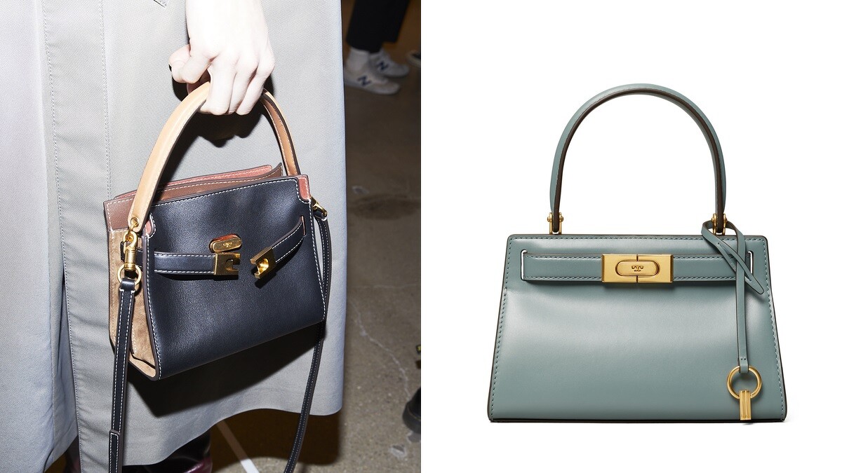 有輕奢款凱莉包之稱的Lee Radziwill經典包,是2018年Tory Burch以紐約傳奇名媛Lee Radziwill為靈感打造的話題 包款,擁有方正、簡約的外觀,以及標誌性霧金色的T字鎖釦設計,可以使用垂墜在提把上的鑰匙將鎖開啟,包款選用柔滑義大利皮革製作,搭載手提把設計,同時附有可自由調整的長背帶,是一款兼具奢華感與實用性的手袋。2020秋冬品牌再推酒紅色、湖水藍、焦糖棕新色,提供大尺寸29.5cm與小尺寸20.5cm的選擇。(Lee Radziwill經典包,NT21,900小)