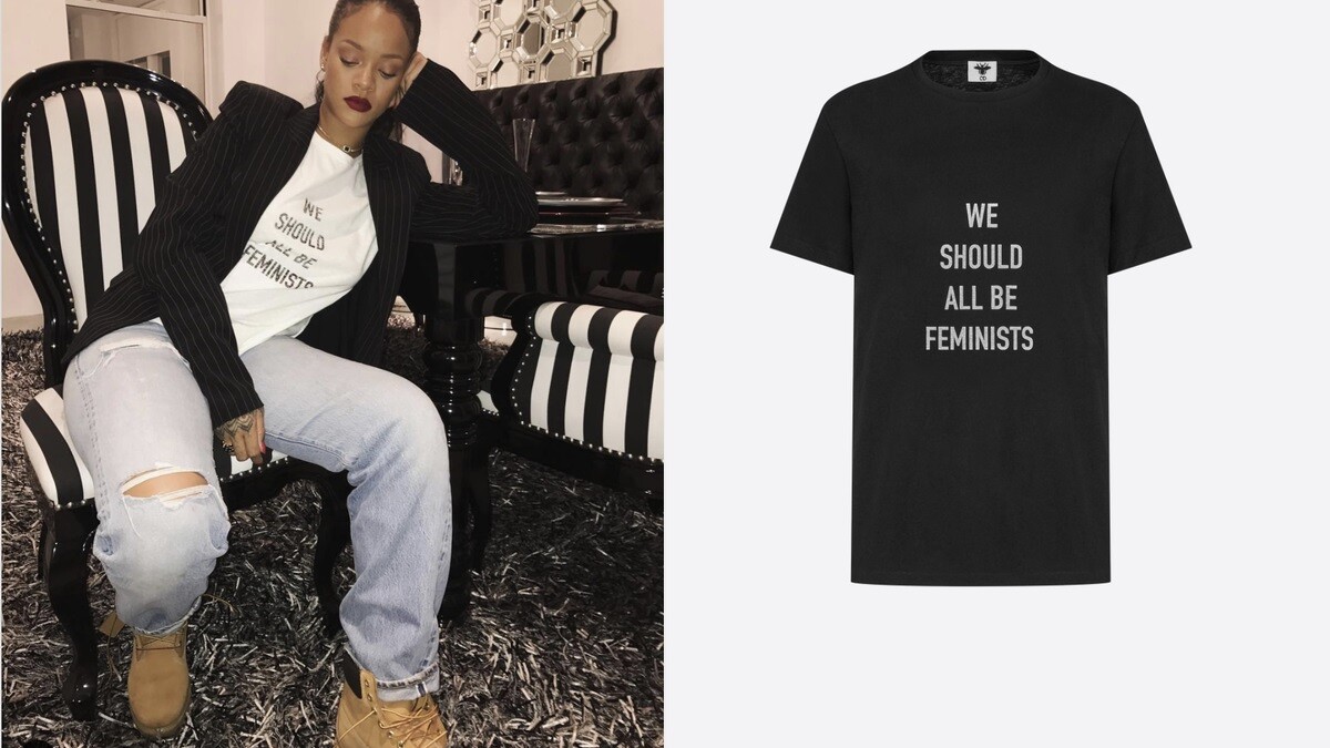 另一款We Should All Be FeministsT恤,有別於J’adiorT恤,是款SloganT恤,雖衣服上無品牌標誌,但該T恤的Slogan設計已成為品牌的代表性作品,且更是Natalie Portman、蕾哈娜等好萊塢明星的愛衣。(NT$28,000)