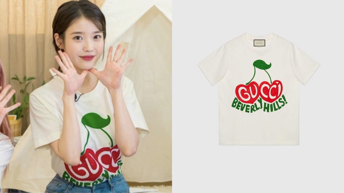 另外,像是充滿著夏季氣息的Gucci櫻桃T恤,是女神IU近期喜愛的款式,俏皮可愛的風格,絕對是夏季穿搭的必備單品。(約NT$14,500)