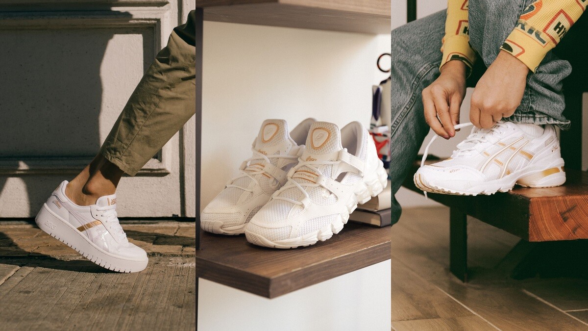 對小白鞋沒有絲毫抵抗力的你,那Asics全新上市的SportStyle系列絕對深得你心,以優雅氣質的純白色為主題,點綴上金色細節,推出3款適合不同場合搭配的新鞋款。Japan S PF採用厚底搭配金色與透明偏光色相間虎爪為設計,是小隻女的首選;由經典鞋型Tarther 98及Gel-Quantum打造的混血新鞋款Gel-Tarther 180兼具運動與休閒風格;復古跑鞋Gel-1090也換上白、金色加入全新系列。(左)NT2,580、(中)NT3,280、(右)NT2,980