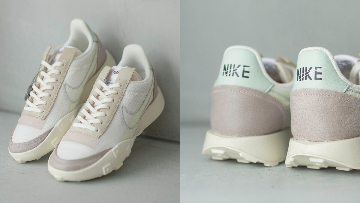 廣受女孩喜愛的Nike Waffle Racer再推粉嫩配色,以氣質優雅的奶油白麂皮打造鞋面,並在後腳跟處點綴上湖水綠皮格細節,搭配Swoosh質感金屬吊飾於鞋帶處,同樣在鞋側邊可發現1974年推出的專利編號「3793750」,將於本週六於Fruition正式發售,每雙鞋售價為台幣4,500元,剛好想買新鞋的女孩,務必到店上試穿看看。(8/29 下午2點於Fruition販售)