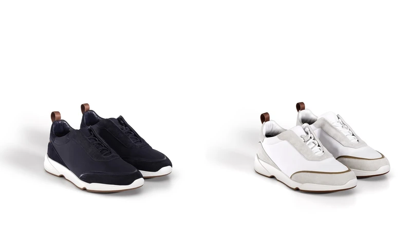義大利精品Loro Piana,今年父親節,為帥氣熟男爸爸帶來適合旅行及運動的時尚運動鞋款,兩者皆選用Modular Walk技術布料,提供腳極緻的舒適度,且擁有黑、白兩種配色的選擇。Modular Walk技術布料運動鞋NT27,200
