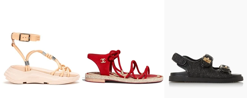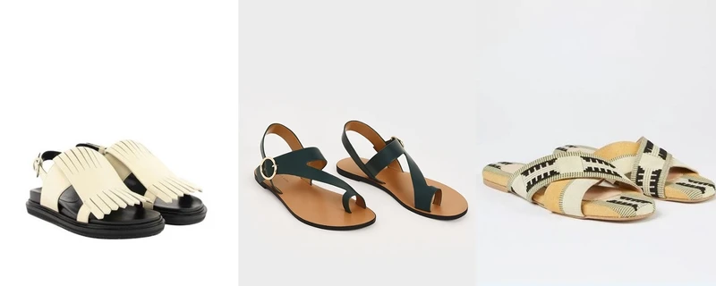 平底涼鞋從來沒有像現在這麼的盛行。像是草編平底鞋款和穆勒涼鞋都是今年夏天很受歡迎的款式。不論是在快時尚品牌還是設計師品牌也都可以看見白色以及充滿熱帶水果或動物圖案...等各式各樣的平底涼鞋。另外你也可以選擇當季的流行色或是流蘇元素的鞋款幫你的穿搭增加亮點。此外穿搭的部分可以搭配洋裝、亞麻材質的西裝都可以穿出不同的風格。