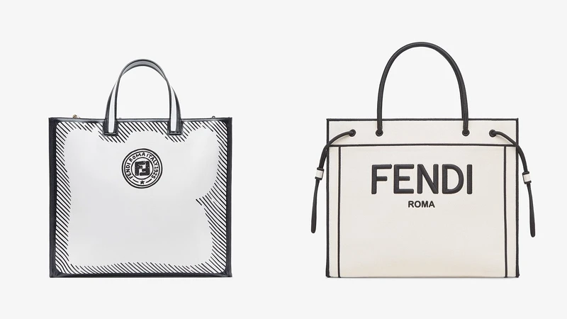 源自Fendi California Sky系列的手袋,自問世以來一直是品牌討論度極高的包款,除了使用白色亮面布料,其包款更利用黑色麥克筆筆觸,營造2D效果,搭配黑色Fendi Stamp,而包內也印有品牌FF圖樣,並附有拉鏈內袋,不論外觀或內部,都充滿著新穎的潮流感。若你喜愛簡約單調的包款,Fendi Roma Shopper手提袋,以俐落的黑色對比線條勾勒包款輪廓,並搭配極具現代感的品牌經典Logo,整體簡單又時髦,且提供大型、中型兩種尺寸選擇。(左,店洽、右,大型NT$68,000)