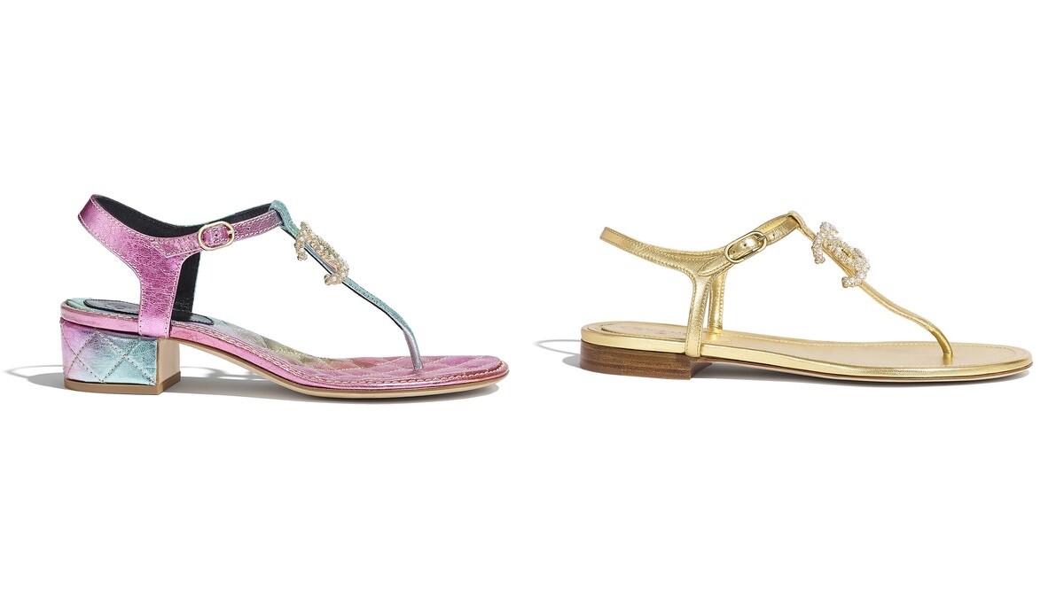 對香奈兒有研究的女孩,這雙簡約線條設計,加入標誌性雙C Logo的經典涼鞋肯定不陌生,鞋底、鞋跟處以香奈兒經典菱格紋圖案打造,除了經典配色外,每季更搭配大膽色系重新登場,好比全新2019/20 Métiers d’art工坊系列所推出的粉彩色款式。