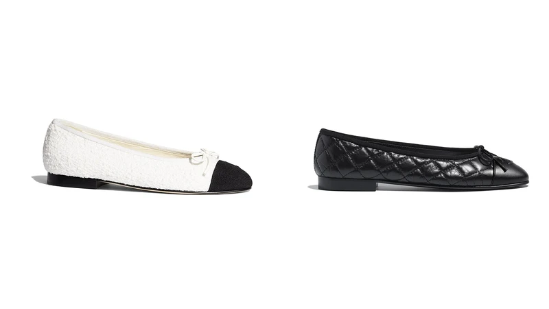1984年首次在春夏系列登場的芭蕾舞鞋款,啟迪自舞蹈及體操世界的芭蕾舞鞋,是香奈兒前任創意總監卡爾拉格斐成為品牌掌舵人後,所打造的第一雙鞋款,他從香奈兒女士1957年推出的雙色鞋擷取靈感,講求腿部線條更加修長、雙腳更顯纖細的設計,於是黑色鞋頭的米色芭蕾舞鞋就此誕生。