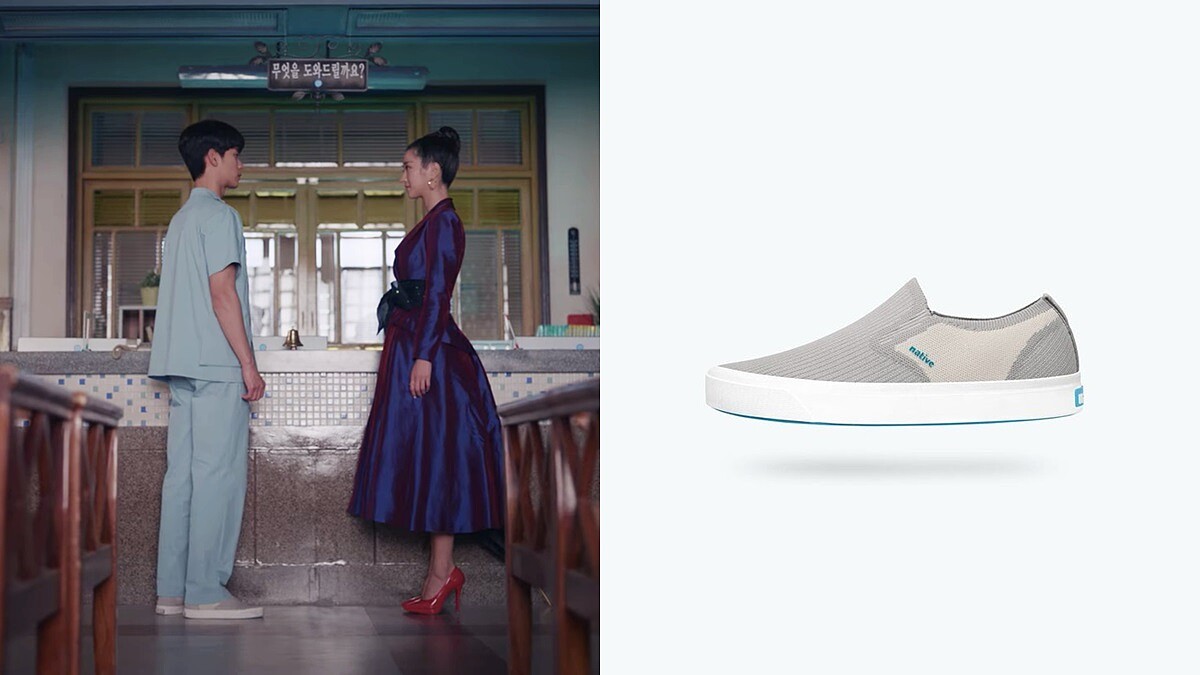 2009年創立於加拿大的休閒鞋品牌Native,以輕盈橡膠鞋與洞洞鞋打響知名度,而文鋼太在劇中所身穿的Miles 2.0 Liteknit懶人鞋,材質選用輕量的Eva面料,搭配灰、米兩種配色,整體樸實無華,相當符合文鋼太的節省、平凡的個性。(NT3,050)