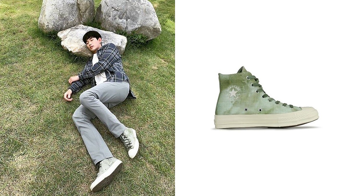 經典不敗的Converse Chuck 70,從亮相以來一直都是品牌討論度極高的鞋款,不僅造型相當多變,配色的選擇更是大膽、新穎。在劇中,男主時常以Converse鞋款登場,其中在第九集裡,文鋼太選擇高筒Dye Job鞋款亮相,經典Chuck 70鞋型搭配綠色暈染,與深藍色格紋襯衫成對比。(約NT3,050)