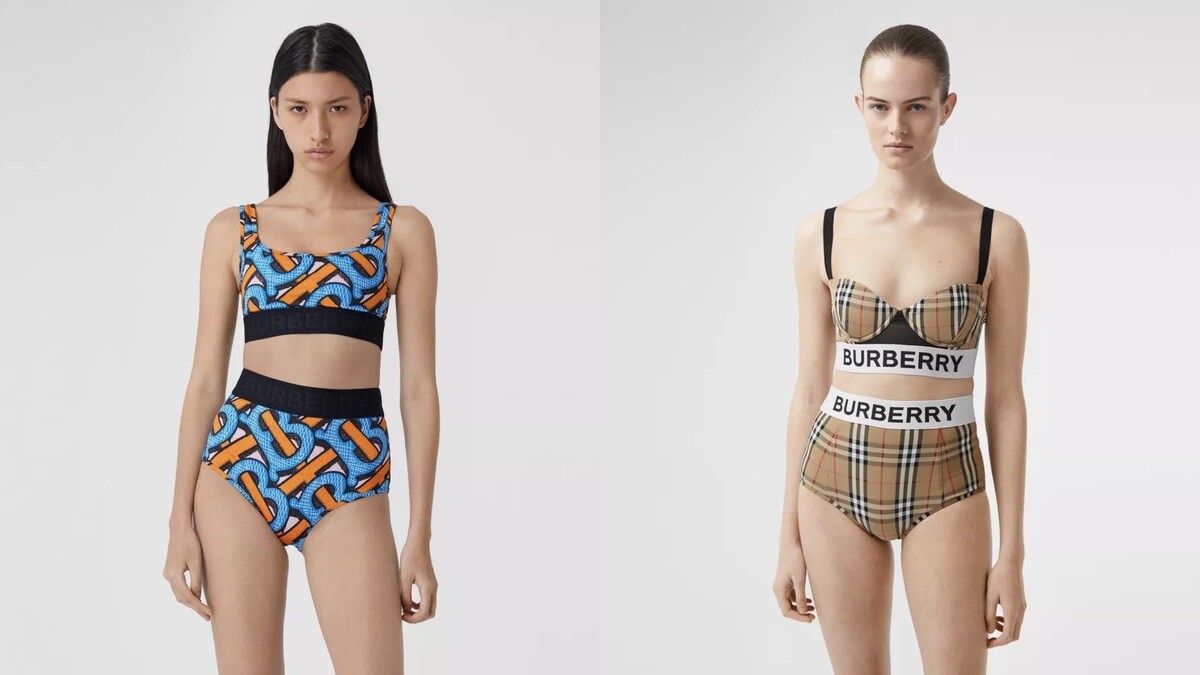 Riccardo Tisci接掌Burberry創意總監後,為英國百年老牌設計全新TB Logo,2020年夏季,Riccardo Tisci再推出全新TB Summer Monogram系列,注入創意總監一貫的大膽作風,將TB Logo改造成天藍色、橙色調鈷藍色的大尺寸字母,除了服裝系列外,TB Summer Monogram系列的泳裝比基尼同樣亮眼。而大家熟悉的紅、黑、白格紋的經典圖紋也推出泳裝款式可供選擇。(花押字印花比基尼泳裝,NT18,200、Vintage格紋比基尼泳衣,NT18,200、Vintage格紋比基尼泳褲,NT15,800)