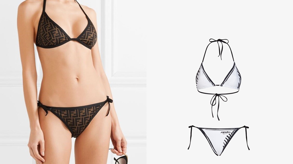 最後同樣以老花圖騰為設計的Fendi,分別推出2款比基尼泳裝款式,選用經典不敗的FF Logo老花圖案,並以黑色、白色飾邊點綴,恰巧搭上近年大勢的復古風潮。除了老花款式外,早在前陣子與Joshua Vides推出的聯名系列中,也推出了兩件式泳裝。