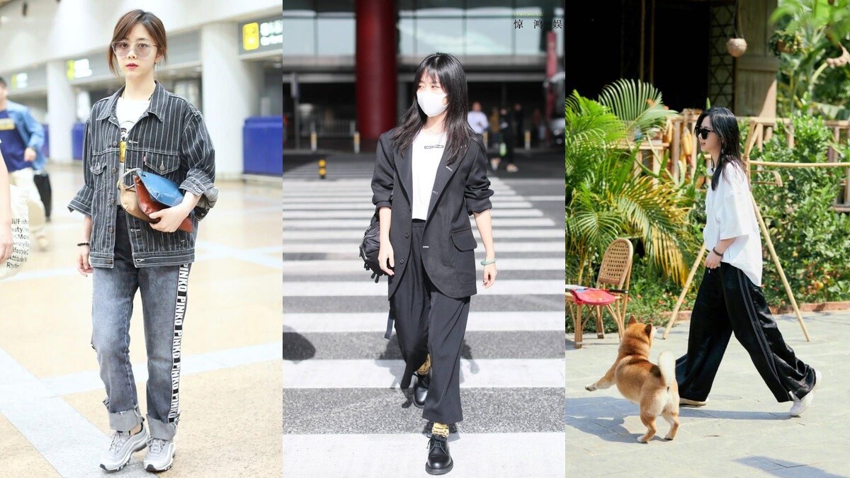 私底下譚松韻可以說是帥翻天,像是整套的丹寧穿著搭配透明墨鏡,西裝外套跟西裝寬褲再踩一雙龐克馬汀,又或者是一件寬鬆白T搭上運動寬褲跟白球鞋,將她個性、態度的帥氣感表露無疑,別說還以為是大學生的年紀。