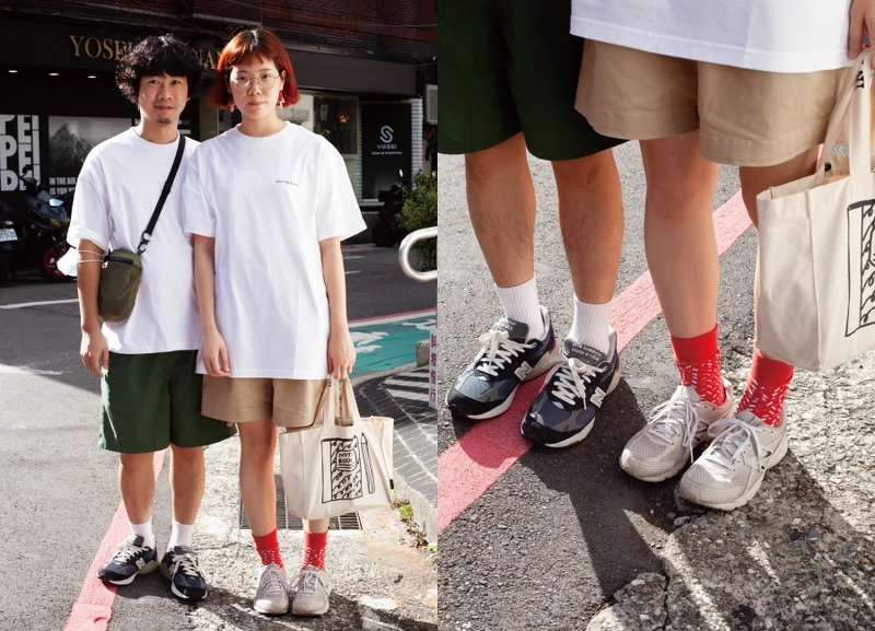 在大面積色塊的碰撞下,勾勒簡而有型的情侶裝束。|以繽紛襪子點亮穿搭細節,展現童心未泯風格。