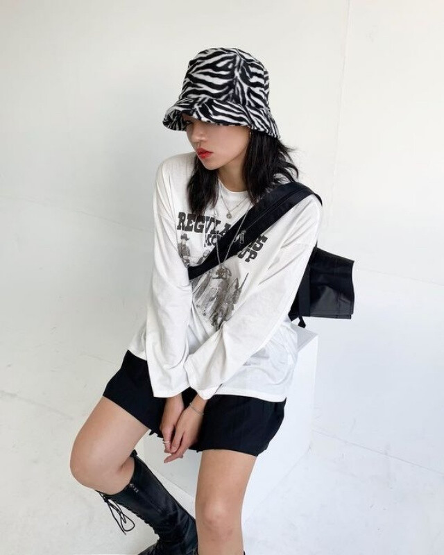 如果你已經開始喜歡上又酷又甜的斑馬紋,卻又不好意思把它放在身上的話,就可以選擇這種斑馬紋的漁夫帽,簡單搭配寬鬆的白色大學 T 和黑色褲子就非常有型,讓你整個人散發低調卻時髦的酷帥風格。(圖片來源)
