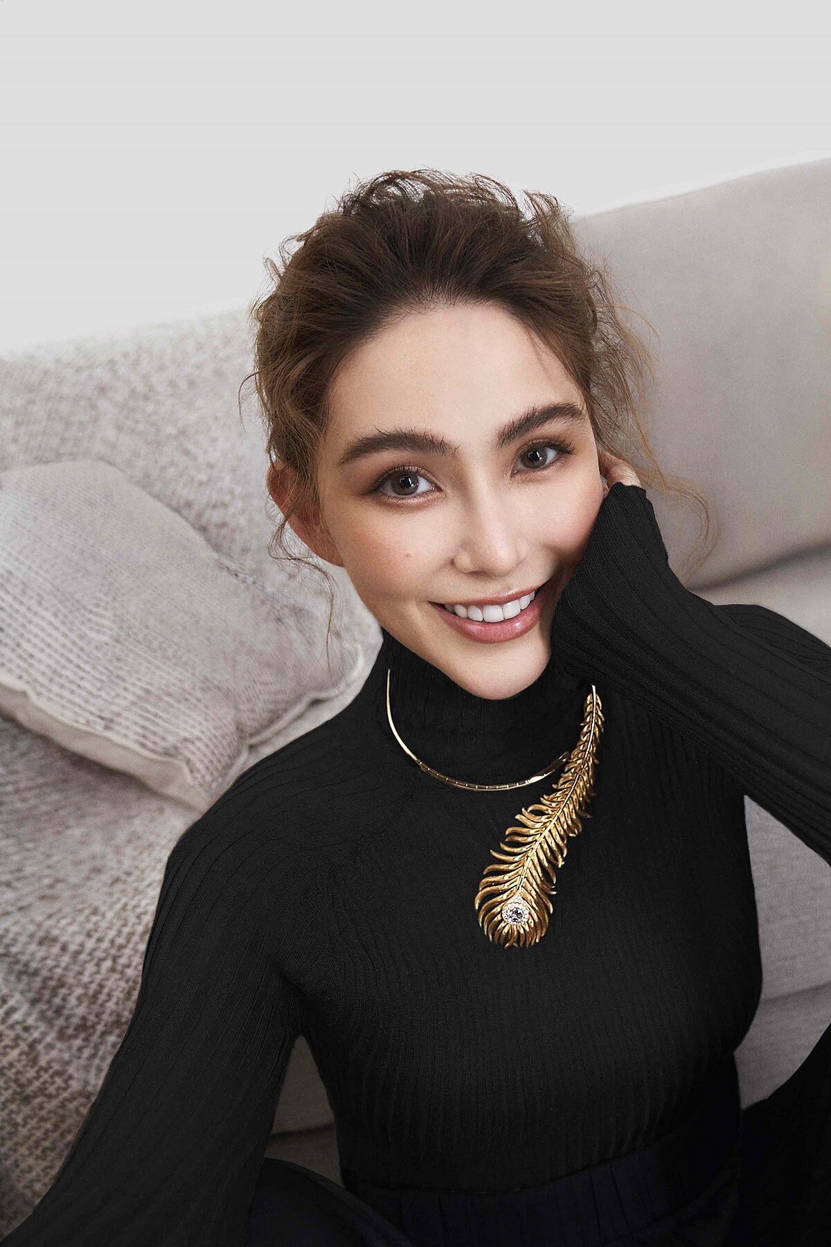 才剛接下Boucheron寶詩龍品牌大使的昆淩,在影片中選擇一款18K黃金鑲嵌鑽石的不對襯問號高級珠寶項鍊,簡單搭配高領上衣,讓精美的項鍊成為最美亮點。問號項鍊問世於1879年,在當時講求和諧對襯美的時代,此造型其實也有革命前衛精神,另一要點是它沒有搭扣,穿戴者只需要輕輕扭動即可穿上,也頗有解放、自由之意味,多年以來成為珠寶圈相當具代表性的設計。其獨到風格來自背後的獨家工法:「Trembleur顫動」,透過一個個金屬元件,打造出靈活律動的項鍊;而Plume de Paon孔雀羽毛問號項鍊,也是具品牌象徵性的設計元素,每一根羽毛皆以數個關節組成。